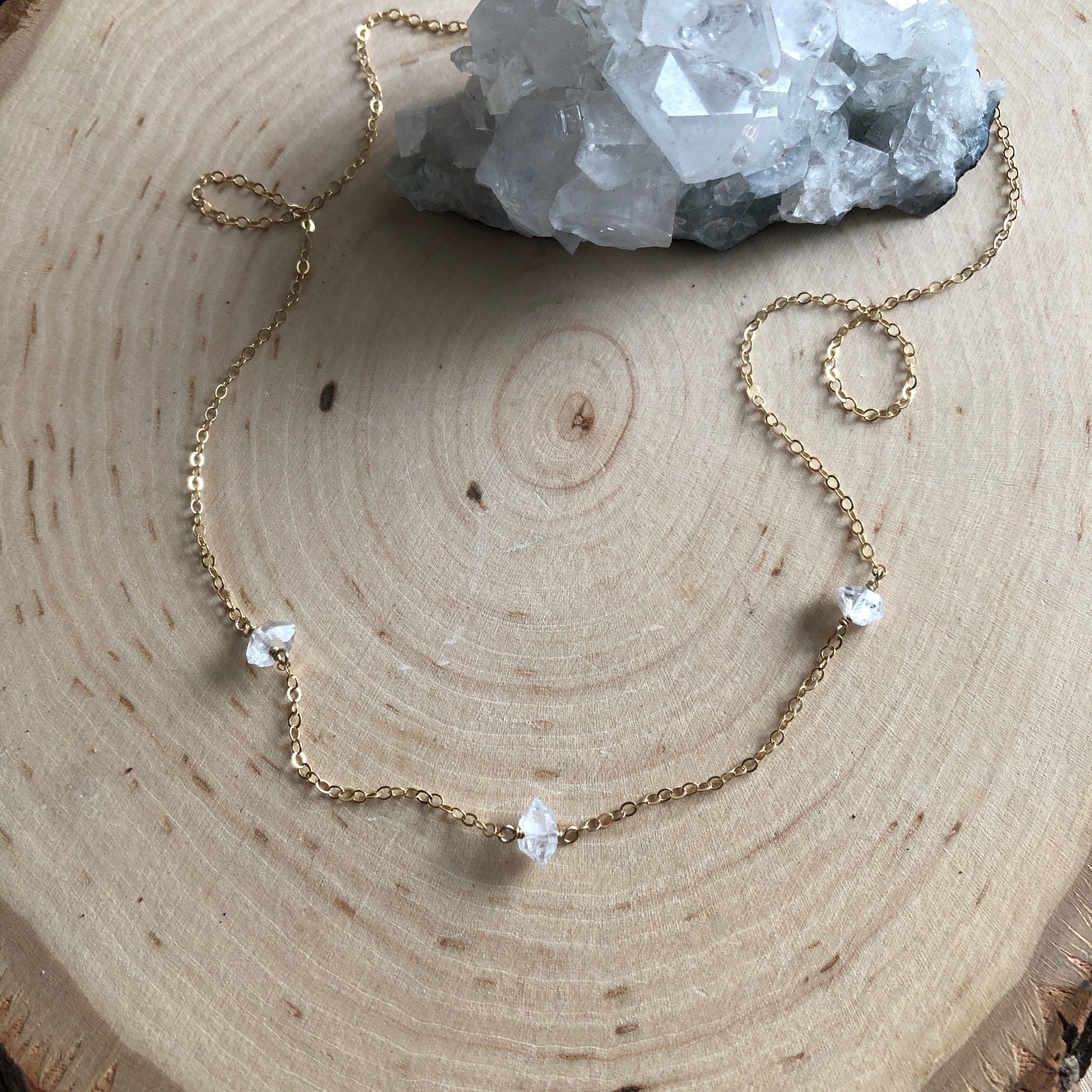 Three Station Mini Herkimer Necklace